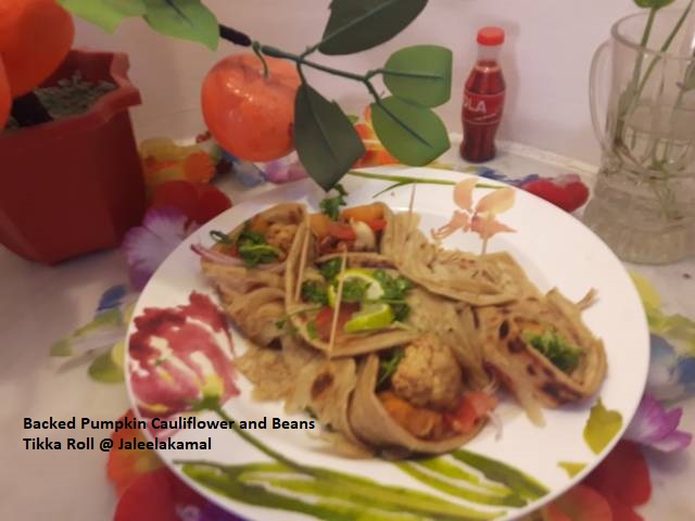 Backed Pumpkin Cauliflower and Beans Tikka Roll